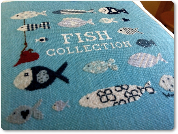 Infine una deliziosa miniatura, ricamata 1 filo su 1 filo: l'artista Woody, ossia Carmen Censi del blog "legallinecrocettano" ha fotografato il lavoro ultimato vicino alle sua preziose manine, così vi potete rendere conto di quanto è piccolo lo schema "Fish Collection" che ha realizzato: stupendoooooo!!!