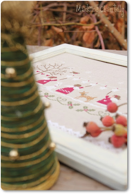 Sono particolarmente affezionata a questo soggetto. L'ho immaginato sin dall'anno scorso e pian piano ha preso forma, fino a definirsi così come lo vedete. Qualche campanellino ha reso più particolare il ricamo.